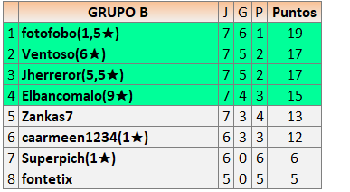 Deja un comentarioEn está página se irán publicando los resultados de las diferentes partidas, siendo ambos jugadores responsables de subirlos o de comprobar que ya hayan sido publicados insertando un COMENTARIO en la parte inferior de la pantalla (opción “Deja tu comentario”), indicando el nombre de los dos jugadores y los puntos obtenidos en la partida.