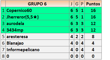 En está página se irán publicando los resultados de las diferentes partidas, siendo ambos jugadores responsables de subirlos o de comprobar que ya hayan sido publicados insertando un COMENTARIO en la parte inferior de la pantalla (opción “Deja tu comentario”), indicando el nombre de los dos jugadores y los puntos obtenidos en la partida.