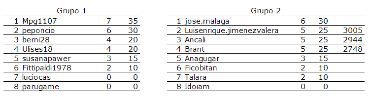 Deja un comentarioEn está página se irán indicando los resultados de las diferentes partidas. Lo único que tienes que hacer es insertar un comentario en la parte inferior de la pantalla (“Deja tu comentario”) indicando el nombre de los dos usuarios y los puntos obtenidos por ambos en la partida. El vencedor de cada partida será el encargado de comunicar el resultado en este apartado.