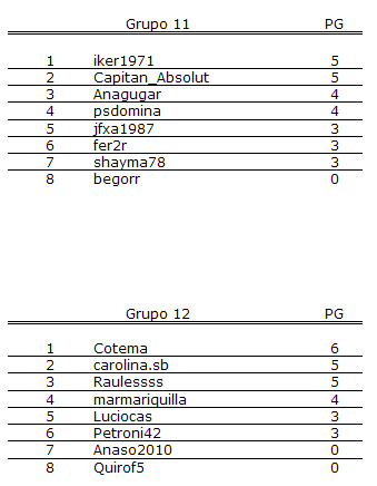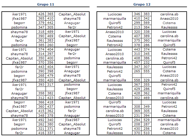 Deja un comentarioEn está página se irán indicando los resultados de las diferentes partidas. Lo único que tienes que hacer es insertar un comentario en la parte inferior de la pantalla (“Deja tu comentario”) indicando el nombre de los dos usuarios y los puntos obtenidos por ambos en la partida. El vencedor de cada partida será el encargado de comunicar el resultado en este apartado.
