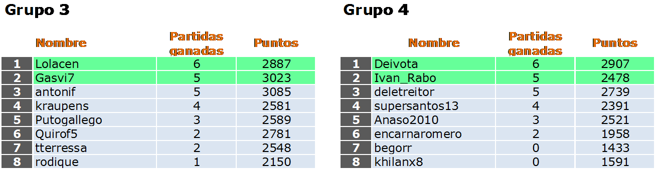 Deja un comentarioEn está página se irán indicando los resultados de las diferentes partidas. Lo único que tienes que hacer es insertar un comentario en la parte inferior de la pantalla (“Deja tu comentario”) indicando el nombre de los dos usuarios y los puntos obtenidos por ambos en la partida. El vencedor de cada partida será el encargado de comunicar el resultado en este apartado.