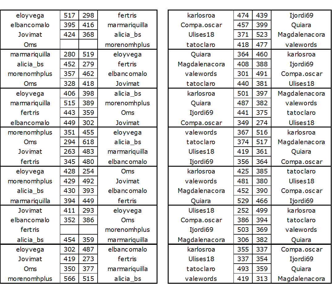 – Obtendrán 10 puntos extras para el Ranking de TorneosApalabrados los jugadores que publiquen todos sus resultados.