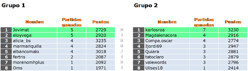 Deja un comentarioEn está página se irán publicando los resultados de las diferentes partidas, siendo el vencedor el encargado de hacerlo, insertando un COMENTARIO en la parte inferior de la pantalla (opción “Deja tu comentario“), indicando el nombre de los dos jugadores y los puntos obtenidos en la partida.