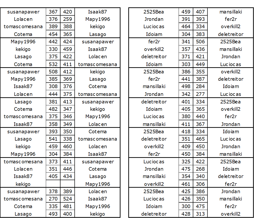 Deja un comentarioEn está página se irán publicando los resultados de las diferentes partidas, siendo el vencedor el encargado de hacerlo, insertando un COMENTARIO en la parte inferior de la pantalla (opción “Deja tu comentario“), indicando el nombre de los dos jugadores y los puntos obtenidos en la partida.