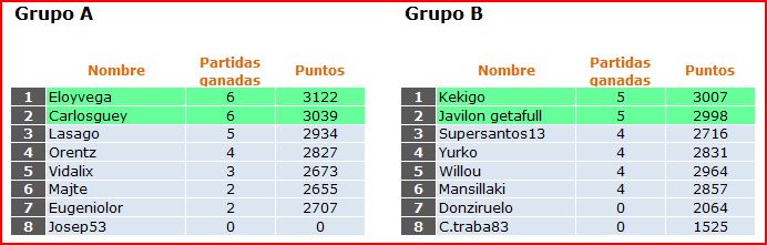 Deja un comentarioEn está página se irán publicando los resultados de las diferentes partidas, siendo el vencedor el encargado de hacerlo, insertando un COMENTARIO en la parte inferior de la pantalla (opción “Deja tu comentario“), indicando el nombre de los dos jugadores y los puntos obtenidos en la partida.