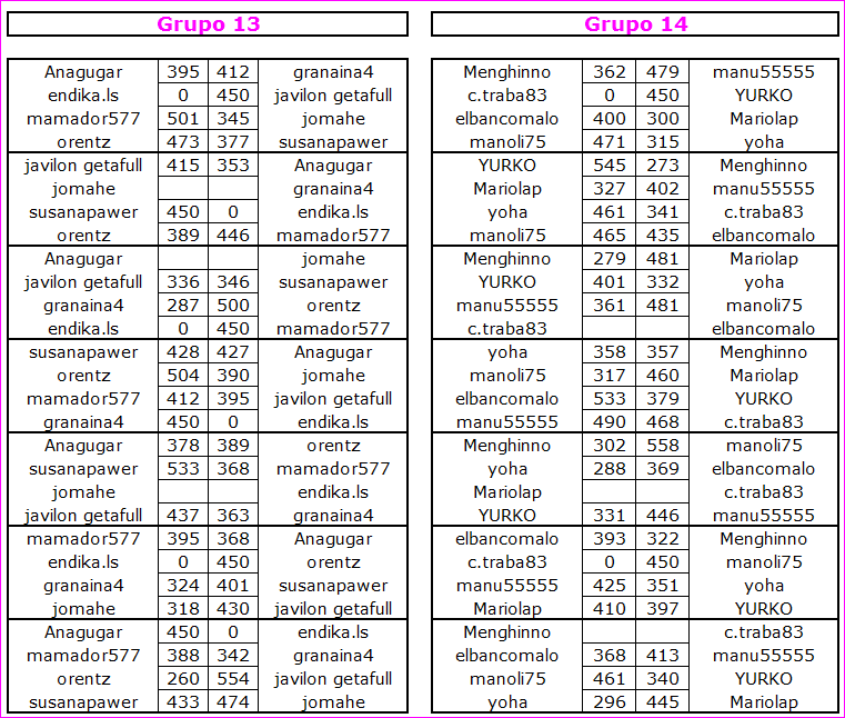 Deja un comentarioEn está página se irán publicando los resultados de las diferentes partidas, siendo el vencedor el encargado de hacerlo, insertando un COMENTARIO en la parte inferior de la pantalla (opción «Deja tu comentario«), indicando el nombre de los dos jugadores y los puntos obtenidos en la partida.