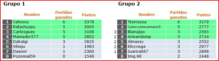 Deja un comentarioEn está página se irán publicando los resultados de las diferentes partidas, siendo el vencedor el encargado de hacerlo, insertando un COMENTARIO en la parte inferior de la pantalla (opción «Deja tu comentario«), indicando el nombre de los dos jugadores y los puntos obtenidos en la partida.