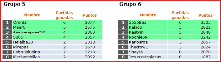 Deja un comentarioEn está página se irán publicando los resultados de las diferentes partidas, siendo el vencedor el encargado de hacerlo, insertando un COMENTARIO en la parte inferior de la pantalla (opción «Deja tu comentario«), indicando el nombre de los dos jugadores y los puntos obtenidos en la partida.