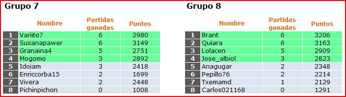 Deja un comentarioEn está página se irán publicando los resultados de las diferentes partidas, siendo el vencedor el encargado de hacerlo, insertando un COMENTARIO en la parte inferior de la pantalla (opción «Deja tu comentario«), indicando el nombre de los dos jugadores y los puntos obtenidos en la partida.
