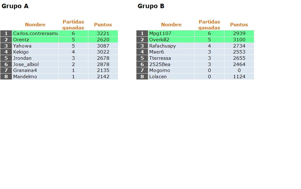 Deja un comentarioEn está página se irán publicando los resultados de las diferentes partidas, siendo el vencedor el encargado de hacerlo, insertando un COMENTARIO en la parte inferior de la pantalla (opción «Deja tu comentario«), indicando el nombre de los dos jugadores y los puntos obtenidos en la partida.