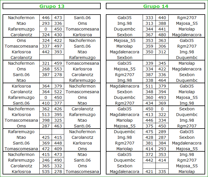Deja un comentarioEn está página se irán publicando los resultados de las diferentes partidas, siendo el vencedor el encargado de hacerlo, insertando un COMENTARIO en la parte inferior de la pantalla (opción «Deja tu comentario«), indicando el nombre de los dos jugadores y los puntos obtenidos en la partida.