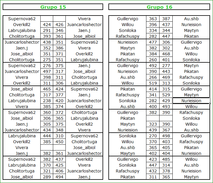 Deja un comentarioEn está página se irán publicando los resultados de las diferentes partidas, siendo el vencedor el encargado de hacerlo, insertando un COMENTARIO en la parte inferior de la pantalla (opción «Deja tu comentario«), indicando el nombre de los dos jugadores y los puntos obtenidos en la partida.