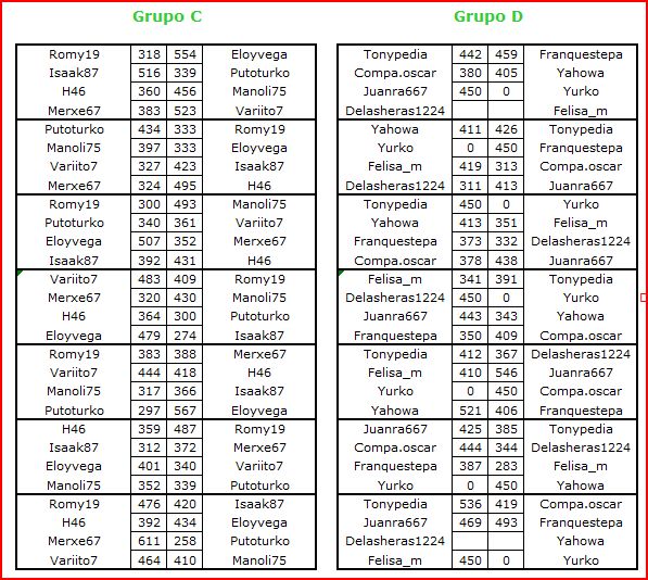 Deja un comentarioEn está página se irán publicando los resultados de las diferentes partidas, siendo el vencedor el encargado de hacerlo, insertando un COMENTARIO en la parte inferior de la pantalla (opción «Deja tu comentario«), indicando el nombre de los dos jugadores y los puntos obtenidos en la partida.