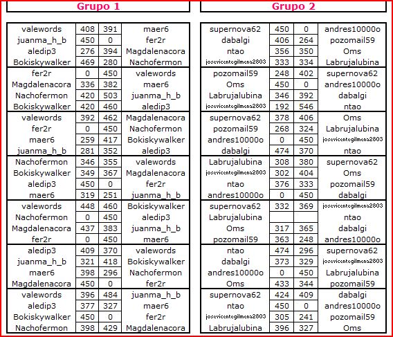 Deja un comentarioEn está página se irán publicando los resultados de las diferentes partidas, siendo el vencedor el encargado de hacerlo, insertando un COMENTARIO en la parte inferior de la pantalla (opción «Deja tu comentario«), indicando el nombre de los dos jugadores y los puntos obtenidos en la partida.