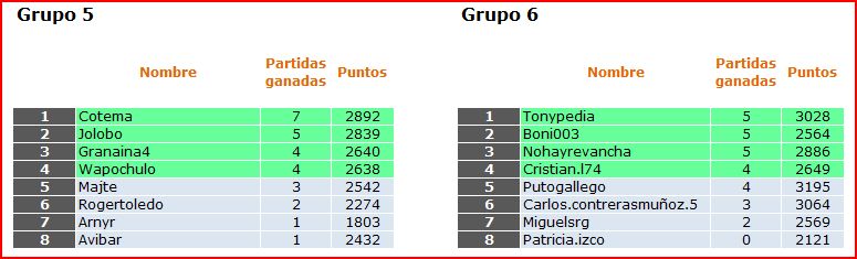 Deja un comentarioEn está página se irán publicando los resultados de las diferentes partidas, siendo el vencedor el encargado de hacerlo, insertando un COMENTARIO en la parte inferior de la pantalla (opción «Deja tu comentario«), indicando el nombre de los dos jugadores y los puntos obtenidos en la partida.