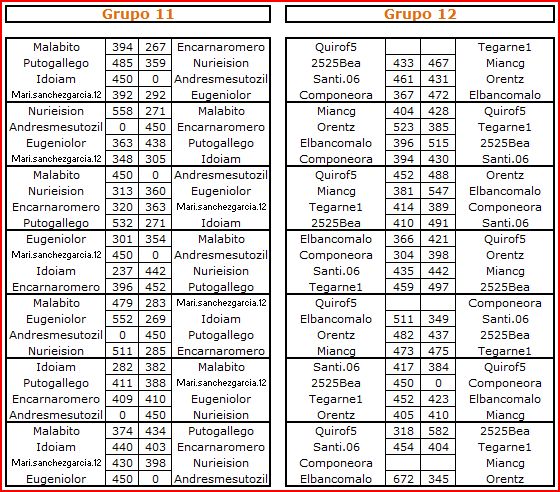 Deja un comentarioEn está página se irán publicando los resultados de las diferentes partidas, siendo ambos jugadores los responsables de subirlos, o comprobando que ya hayan sido subidos, insertando un COMENTARIO en la parte inferior de la pantalla (opción «Deja tu comentario«), indicando el nombre de los dos jugadores y los puntos obtenidos en la partida.