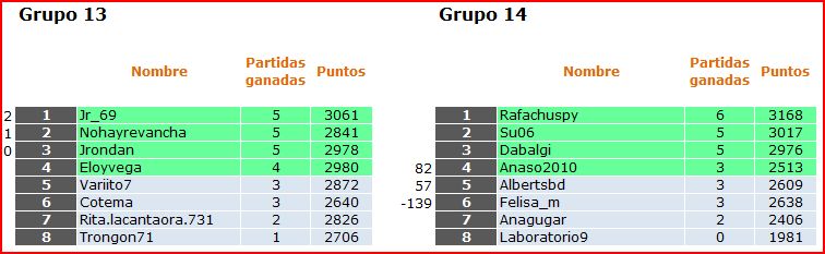Deja un comentarioEn está página se irán publicando los resultados de las diferentes partidas, siendo ambos jugadores los responsables de subirlos, o comprobando que ya hayan sido subidos, insertando un COMENTARIO en la parte inferior de la pantalla (opción «Deja tu comentario«), indicando el nombre de los dos jugadores y los puntos obtenidos en la partida.