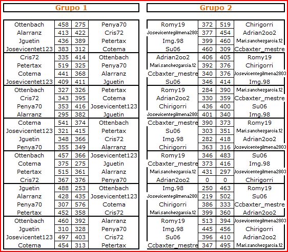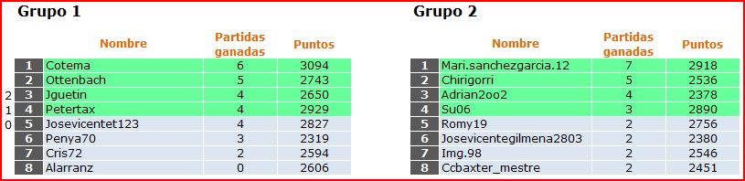 Deja un comentarioEn está página se irán publicando los resultados de las diferentes partidas, siendo ambos jugadores los responsables de subirlos, o comprobando que ya hayan sido subidos, insertando un COMENTARIO en la parte inferior de la pantalla (opción «Deja tu comentario«), indicando el nombre de los dos jugadores y los puntos obtenidos en la partida.
