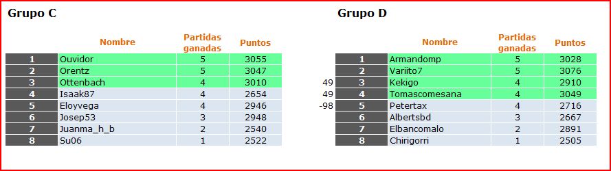 Deja un comentarioEn está página se irán publicando los resultados de las diferentes partidas, siendo ambos jugadores los responsables de subirlos, o comprobando que ya hayan sido subidos, insertando un COMENTARIO en la parte inferior de la pantalla (opción «Deja tu comentario«), indicando el nombre de los dos jugadores y los puntos obtenidos en la partida.