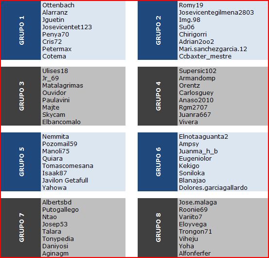 2. Desde el T38, aquellos jugadores que sin causa justificada, no finalizan más de dos partidas (o no publican resultados, perjudicando al normal funcionamiento del Torneo), están siendo sancionados por un Torneo. Es por ello que los jugadores que habiéndose inscrito dentro del plazo, no se encuentren en ningún grupo, han sido sancionados.
