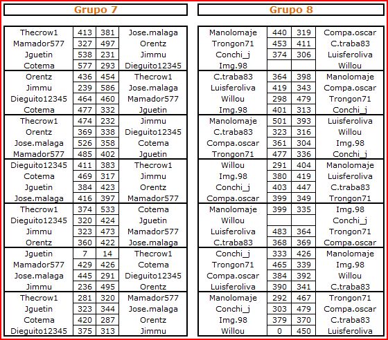 Deja un comentarioEn está página se irán publicando los resultados de las diferentes partidas, siendo ambos jugadores los responsables de subirlos, o comprobando que ya hayan sido subidos, insertando un COMENTARIO en la parte inferior de la pantalla (opción «Deja tu comentario«), indicando el nombre de los dos jugadores y los puntos obtenidos en la partida.