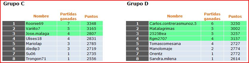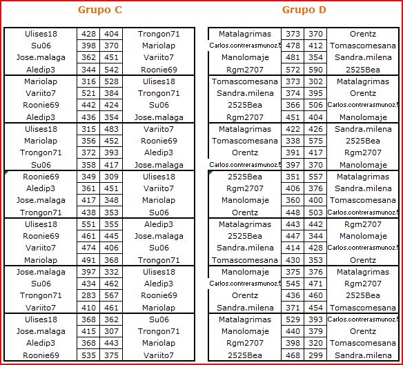 Deja un comentarioEn está página se irán publicando los resultados de las diferentes partidas, siendo ambos jugadores los responsables de subirlos, o comprobando que ya hayan sido subidos, insertando un COMENTARIO en la parte inferior de la pantalla (opción «Deja tu comentario«), indicando el nombre de los dos jugadores y los puntos obtenidos en la partida.