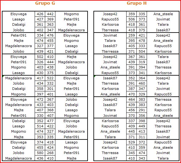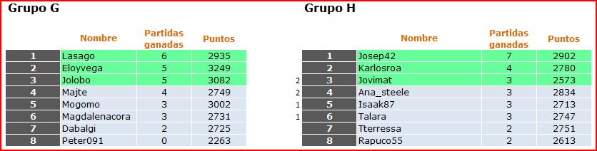 Deja un comentarioEn está página se irán publicando los resultados de las diferentes partidas, siendo ambos jugadores los responsables de subirlos, o comprobando que ya hayan sido subidos, insertando un COMENTARIO en la parte inferior de la pantalla (opción «Deja tu comentario«), indicando el nombre de los dos jugadores y los puntos obtenidos en la partida.