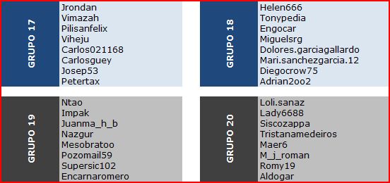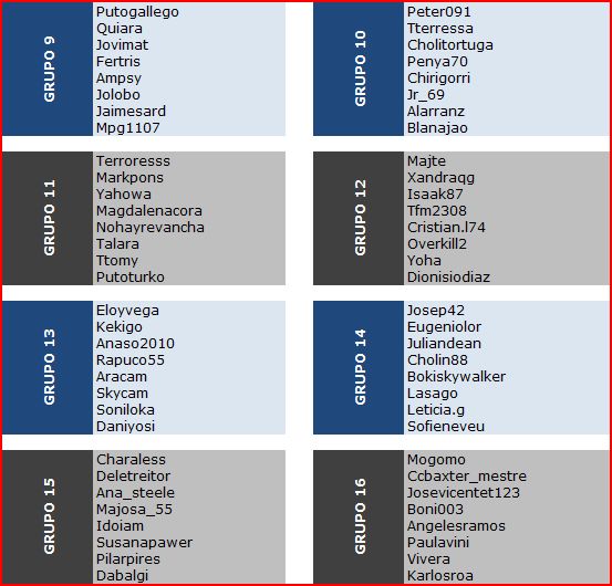 2. Desde el T38, aquellos jugadores que sin causa justificada, no finalizan más de dos partidas (o no publican resultados, perjudicando al normal funcionamiento del Torneo), están siendo sancionados por un Torneo. Es por ello que los jugadores que habiéndose inscrito dentro del plazo, no se encuentren en ningún grupo, han sido sancionados.