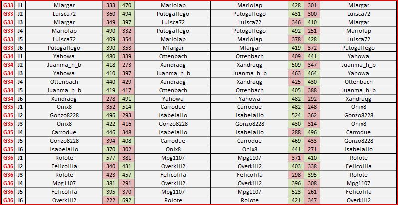 Deja un comentarioEn está página se irán publicando los resultados de las diferentes partidas, siendo ambos jugadores los responsables de subirlos, o comprobando que ya hayan sido subidos, insertando un COMENTARIO en la parte inferior de la pantalla (opción «Deja tu comentario«), indicando el nombre de los dos jugadores y los puntos obtenidos en la partida.