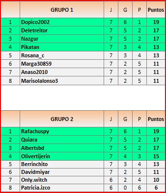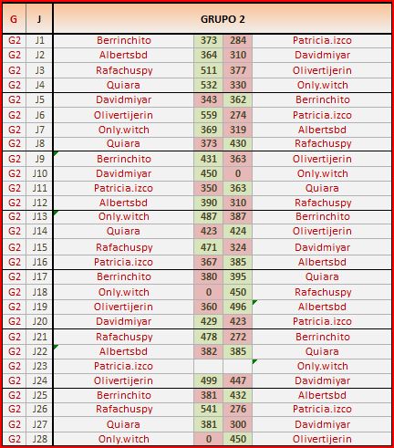 Deja un comentarioEn está página se irán publicando los resultados de las diferentes partidas, siendo ambos jugadores los responsables de subirlos, o comprobando que ya hayan sido subidos, insertando un COMENTARIO en la parte inferior de la pantalla (opción «Deja tu comentario«), indicando el nombre de los dos jugadores y los puntos obtenidos en la partida.