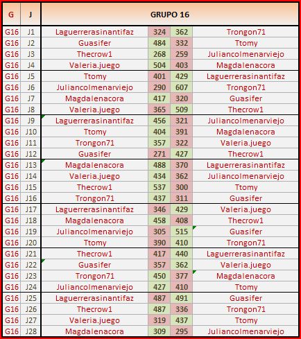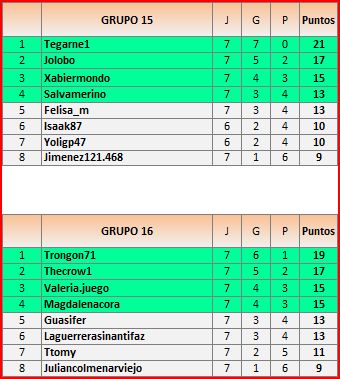 Deja un comentarioEn está página se irán publicando los resultados de las diferentes partidas, siendo ambos jugadores los responsables de subirlos, o comprobando que ya hayan sido subidos, insertando un COMENTARIO en la parte inferior de la pantalla (opción «Deja tu comentario«), indicando el nombre de los dos jugadores y los puntos obtenidos en la partida.