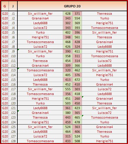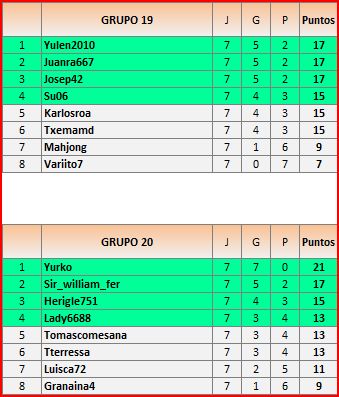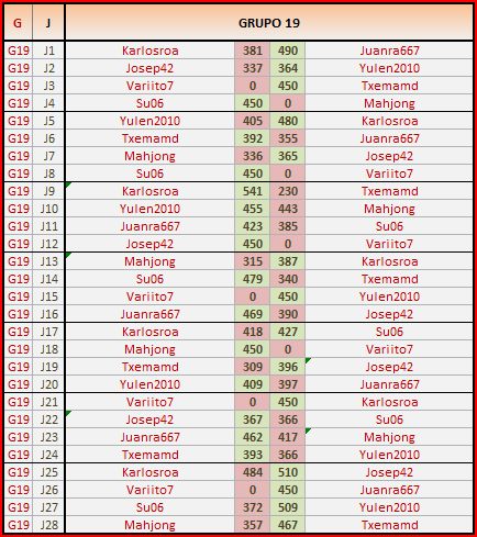 Deja un comentarioEn está página se irán publicando los resultados de las diferentes partidas, siendo ambos jugadores los responsables de subirlos, o comprobando que ya hayan sido subidos, insertando un COMENTARIO en la parte inferior de la pantalla (opción «Deja tu comentario«), indicando el nombre de los dos jugadores y los puntos obtenidos en la partida.