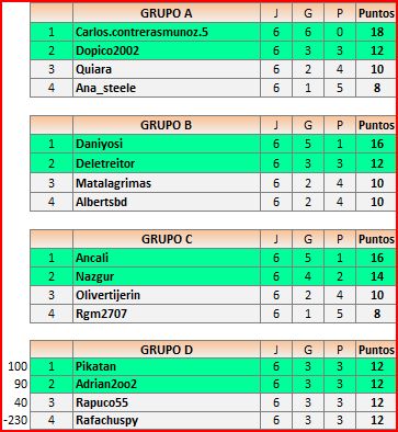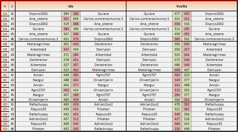Deja un comentarioEn está página se irán publicando los resultados de las diferentes partidas, siendo ambos jugadores los responsables de subirlos, o comprobando que ya hayan sido subidos, insertando un COMENTARIO en la parte inferior de la pantalla (opción «Deja tu comentario«), indicando el nombre de los dos jugadores y los puntos obtenidos en la partida.