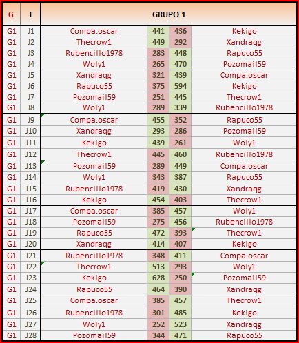 Deja un comentarioEn está página se irán publicando los resultados de las diferentes partidas, siendo ambos jugadores los responsables de subirlos, o comprobando que ya hayan sido subidos, insertando un COMENTARIO en la parte inferior de la pantalla (opción «Deja tu comentario«), indicando el nombre de los dos jugadores y los puntos obtenidos en la partida.