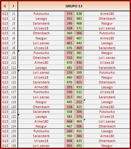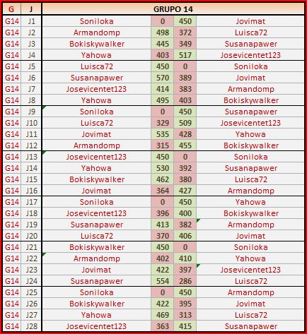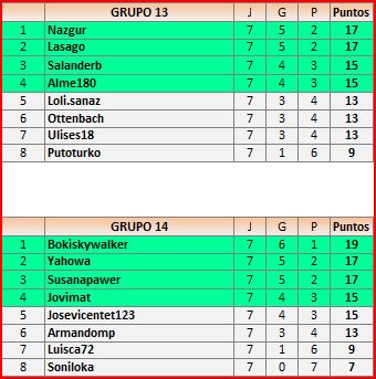 Deja un comentarioEn está página se irán publicando los resultados de las diferentes partidas, siendo ambos jugadores los responsables de subirlos, o comprobando que ya hayan sido subidos, insertando un COMENTARIO en la parte inferior de la pantalla (opción «Deja tu comentario«), indicando el nombre de los dos jugadores y los puntos obtenidos en la partida.