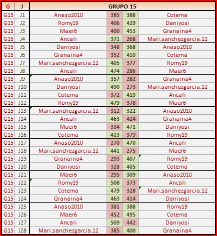 Deja un comentarioEn está página se irán publicando los resultados de las diferentes partidas, siendo ambos jugadores los responsables de subirlos, o comprobando que ya hayan sido subidos, insertando un COMENTARIO en la parte inferior de la pantalla (opción «Deja tu comentario«), indicando el nombre de los dos jugadores y los puntos obtenidos en la partida.