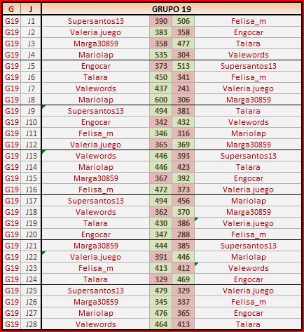 Deja un comentarioEn está página se irán publicando los resultados de las diferentes partidas, siendo ambos jugadores los responsables de subirlos, o comprobando que ya hayan sido subidos, insertando un COMENTARIO en la parte inferior de la pantalla (opción «Deja tu comentario«), indicando el nombre de los dos jugadores y los puntos obtenidos en la partida.