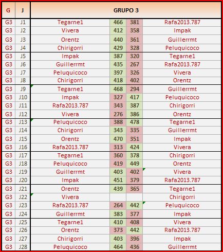 Deja un comentarioEn está página se irán publicando los resultados de las diferentes partidas, siendo ambos jugadores los responsables de subirlos, o comprobando que ya hayan sido subidos, insertando un COMENTARIO en la parte inferior de la pantalla (opción «Deja tu comentario«), indicando el nombre de los dos jugadores y los puntos obtenidos en la partida.