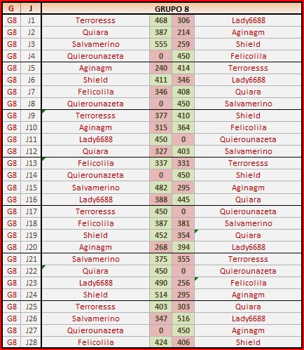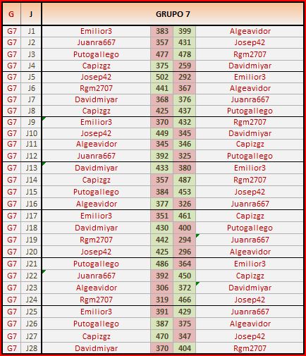 Deja un comentarioEn está página se irán publicando los resultados de las diferentes partidas, siendo ambos jugadores los responsables de subirlos, o comprobando que ya hayan sido subidos, insertando un COMENTARIO en la parte inferior de la pantalla (opción «Deja tu comentario«), indicando el nombre de los dos jugadores y los puntos obtenidos en la partida.