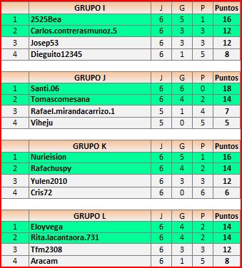 Deja un comentarioEn está página se irán publicando los resultados de las diferentes partidas, siendo ambos jugadores los responsables de subirlos, o comprobando que ya hayan sido subidos, insertando un COMENTARIO en la parte inferior de la pantalla (opción «Deja tu comentario«), indicando el nombre de los dos jugadores y los puntos obtenidos en la partida.