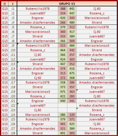 Deja un comentarioEn está página se irán publicando los resultados de las diferentes partidas, siendo ambos jugadores los responsables de subirlos, o comprobando que ya hayan sido subidos, insertando un COMENTARIO en la parte inferior de la pantalla (opción «Deja tu comentario«), indicando el nombre de los dos jugadores y los puntos obtenidos en la partida.