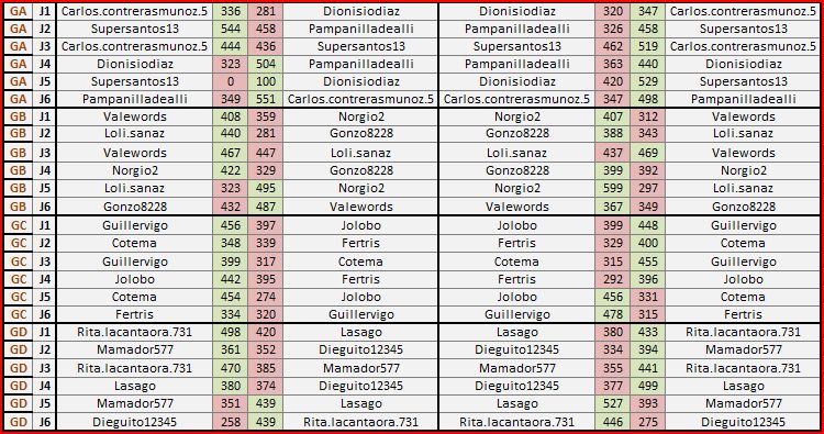 Deja un comentarioEn está página se irán publicando los resultados de las diferentes partidas, siendo ambos jugadores los responsables de subirlos, o comprobando que ya hayan sido subidos, insertando un COMENTARIO en la parte inferior de la pantalla (opción «Deja tu comentario«), indicando el nombre de los dos jugadores y los puntos obtenidos en la partida.