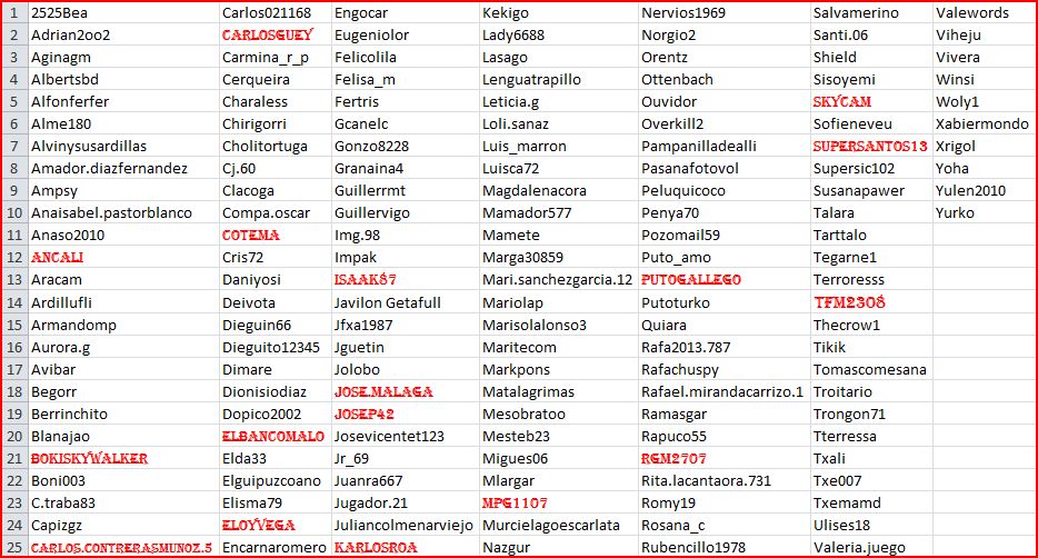 Los jugadores Xoubaxo, Luisenrique.jimenezvalera, Laguerrerasinantifaz, Jesus1712 y Maer6, quedan fuera al haber llegado a la cantidad de 160 inscritos. Lo sentimos, el siguiente tope está en 192 y difícilmente llegaríamos hoy.