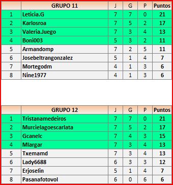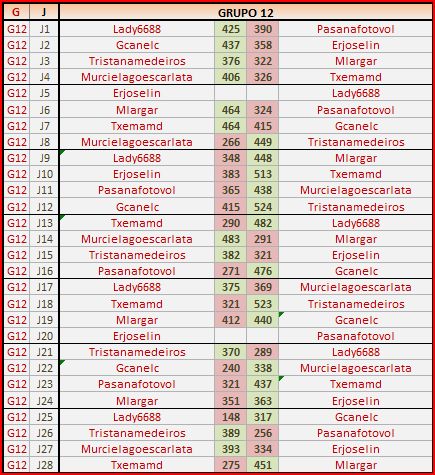 Deja un comentarioEn está página se irán publicando los resultados de las diferentes partidas, siendo ambos jugadores los responsables de subirlos, o comprobando que ya hayan sido subidos, insertando un COMENTARIO en la parte inferior de la pantalla (opción «Deja tu comentario«), indicando el nombre de los dos jugadores y los puntos obtenidos en la partida.