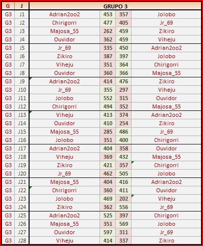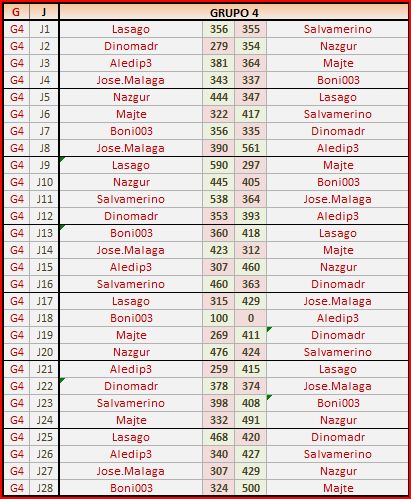 Deja un comentarioEn está página se irán publicando los resultados de las diferentes partidas, siendo ambos jugadores los responsables de subirlos, o comprobando que ya hayan sido subidos, insertando un COMENTARIO en la parte inferior de la pantalla (opción «Deja tu comentario«), indicando el nombre de los dos jugadores y los puntos obtenidos en la partida.