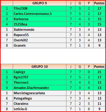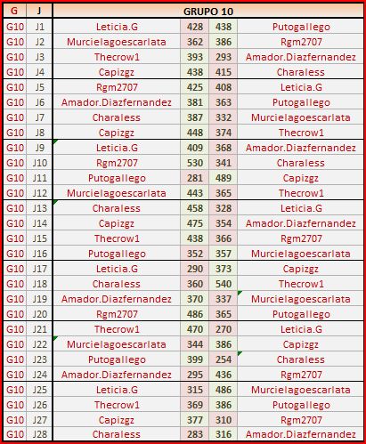 Deja un comentarioEn está página se irán publicando los resultados de las diferentes partidas, siendo ambos jugadores los responsables de subirlos, o comprobando que ya hayan sido subidos, insertando un COMENTARIO en la parte inferior de la pantalla (opción «Deja tu comentario«), indicando el nombre de los dos jugadores y los puntos obtenidos en la partida.