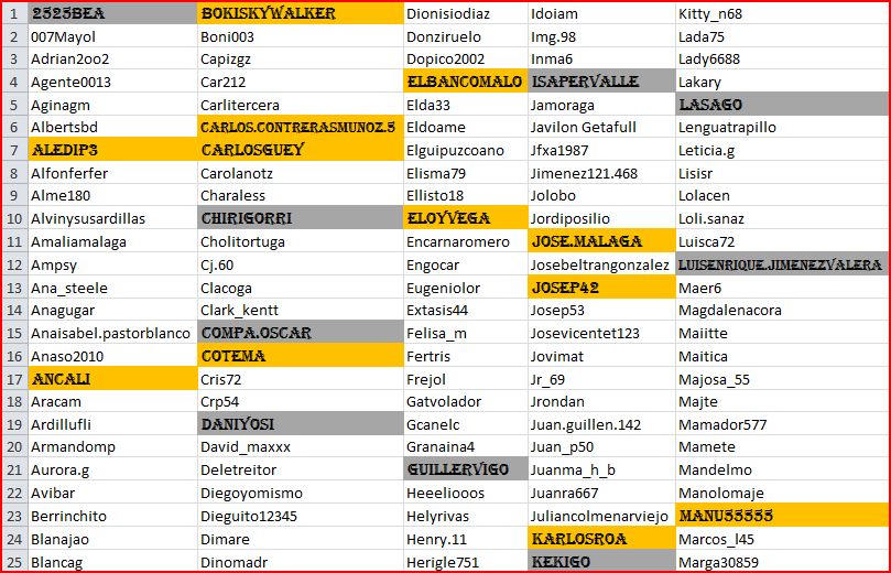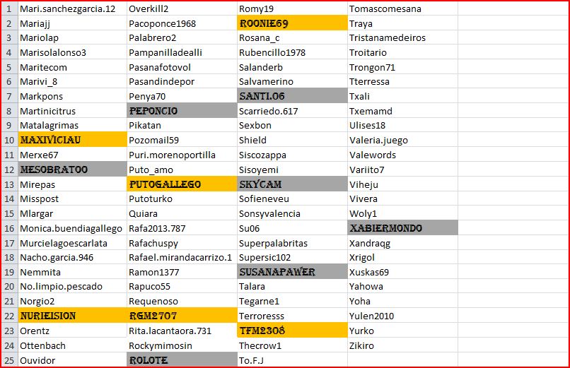 Lista actualizada al 30 de Marzo.