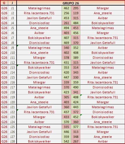 Deja un comentarioEn está página se irán publicando los resultados de las diferentes partidas, siendo ambos jugadores los responsables de subirlos, o comprobando que ya hayan sido subidos, insertando un COMENTARIO en la parte inferior de la pantalla (opción «Deja tu comentario«), indicando el nombre de los dos jugadores y los puntos obtenidos en la partida.