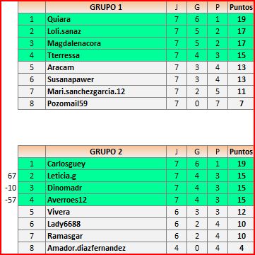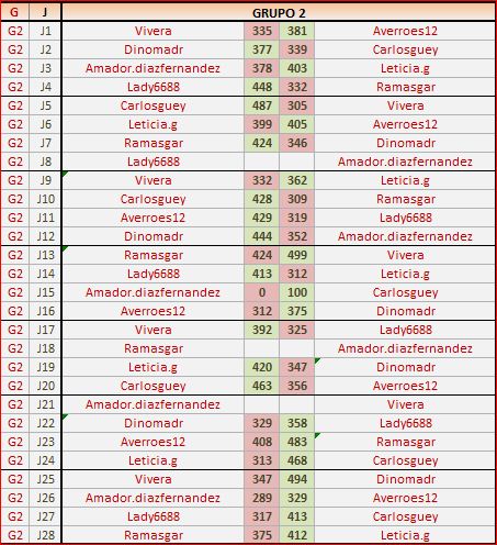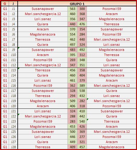 Deja un comentarioEn está página se irán publicando los resultados de las diferentes partidas, siendo ambos jugadores los responsables de subirlos, o comprobando que ya hayan sido subidos, insertando un COMENTARIO en la parte inferior de la pantalla (opción «Deja tu comentario«), indicando el nombre de los dos jugadores y los puntos obtenidos en la partida.