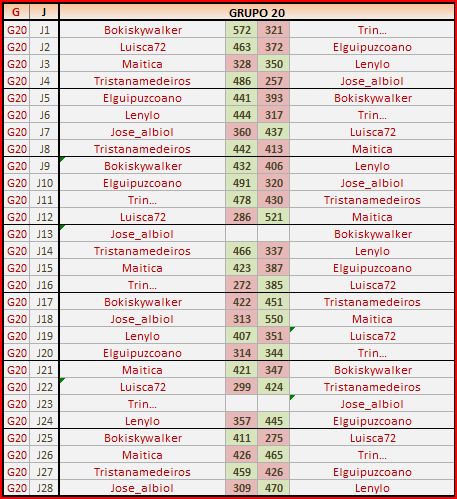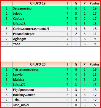 Deja un comentarioEn está página se irán publicando los resultados de las diferentes partidas, siendo ambos jugadores los responsables de subirlos, o comprobando que ya hayan sido subidos, insertando un COMENTARIO en la parte inferior de la pantalla (opción «Deja tu comentario«), indicando el nombre de los dos jugadores y los puntos obtenidos en la partida.